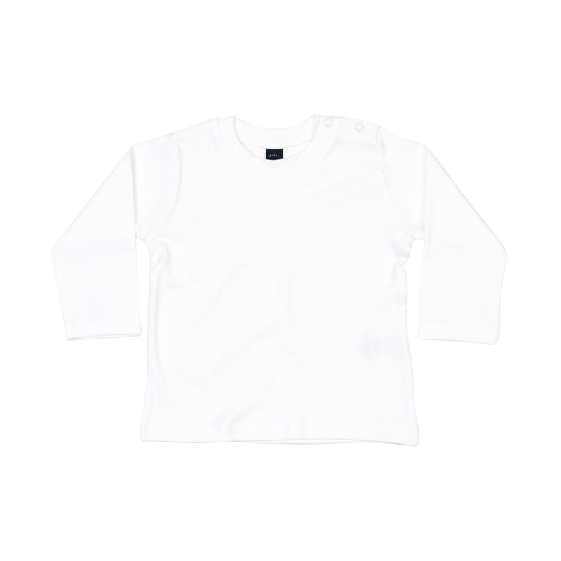 Super soft baby long sleeve T with poppers at side of neck for ease of dressing.