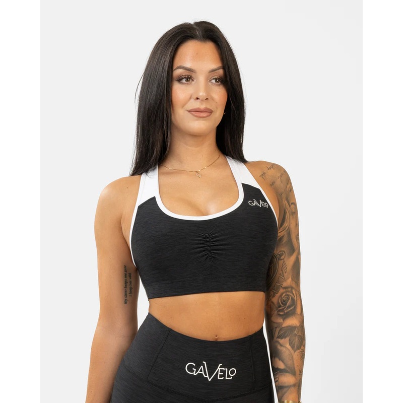 Upplev stil och komfort med vr svartmelerade topp med snygga vita paneler. Denna sportiga BH ger medium till ltt std, med ett mjukt, kroppsvnligt tyg. En liten krympning framtill frstrker silhuetten vackert. Passar perfekt med vra Black & White Swirl komforttights. Njut av en normal passform som r perfekt fr alla aktiviteter.