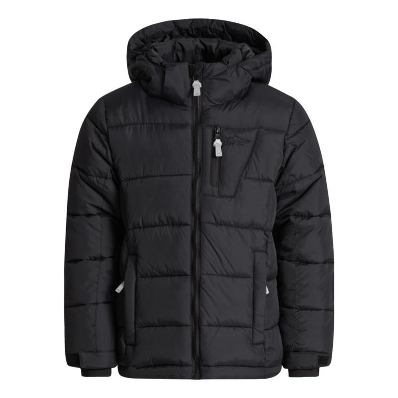 En funktionell och varm dunjacka fr barn med funktioner fr att vara aktiva och rra sig fritt utomhus under vintern. Det hr r en jacka de kan anvnda hela vintern oavsett vad du hller p med! Det vattenavvisande yttertyget hller regnet ute och vi har stoppat insidan med fuskdun, vilket skapar ett varmt plagg som tl de lga temperaturerna i det nordiska klimatet. Huvan r avtagbar och har en dragsko som kan justeras efter vder och hller sn eller vind borta frn huvud och nacke. En dragsko r placerad lngst ner p jackan medan en innermudd med hl fr tummen r placerad lngst ner p rmen. P baksidan finns en reflextejp fr synlighet och skerhet.