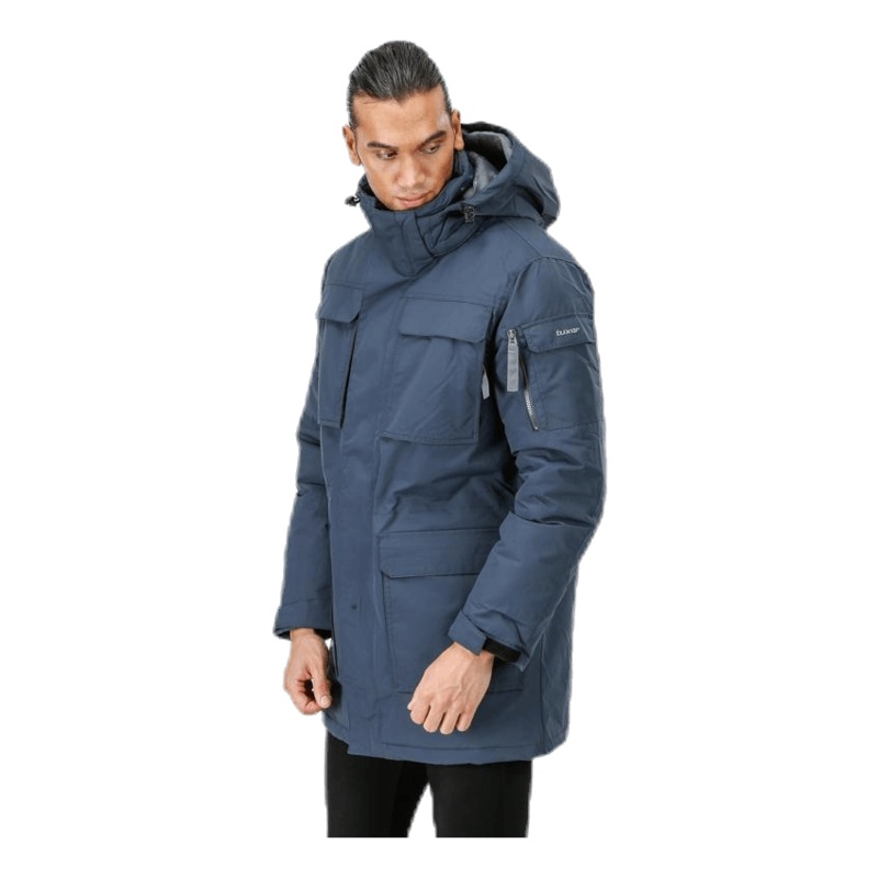 Tlig funktionsjacka i parkas modell, fylld med imitationsdun och extra fyllning av mjuk polyester i axelpartiet. Jackan r bde vind- och vattenavvisande med en avtagbar huva som kan anvndas vid behov. Jackan har flera smarta fickor; tv utanp fickor nedertill och tv p brstet.