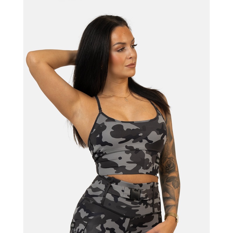 Cargo Camo Bralette kombinerar ett trendigt camomnster med ltt std, med justerbara axelband som skapar en fantastisk ryggdesign. Dess tsittande passform skerstller stabilitet under dina sessioner. Komplett med en bred bottenmanschett och stoppfickor, passar den perfekt med Cargo Camo Stealth-tights!