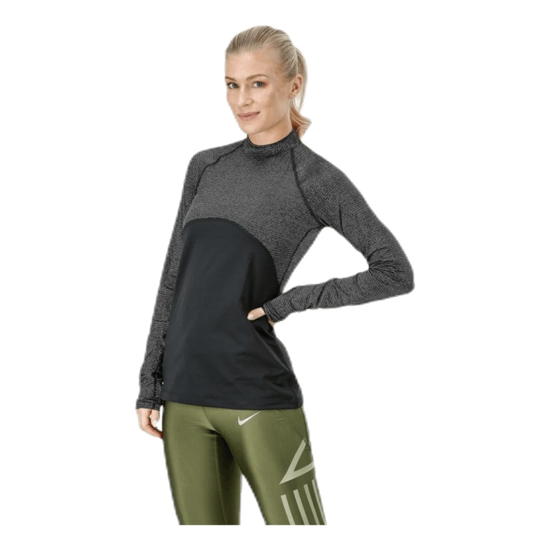 GLNSANDE STIL.Nike Pro Warm Women's Long-Sleeve Top kommer med bde solida och metalliska paneler fr en vacker kontrast av matta och glnsande inslag. Fuskkragedesignen hjer skyddet och vrmen medan Nike Pro-tyget ger svettavlgsnande std.Nike Pro Warm-tyget h