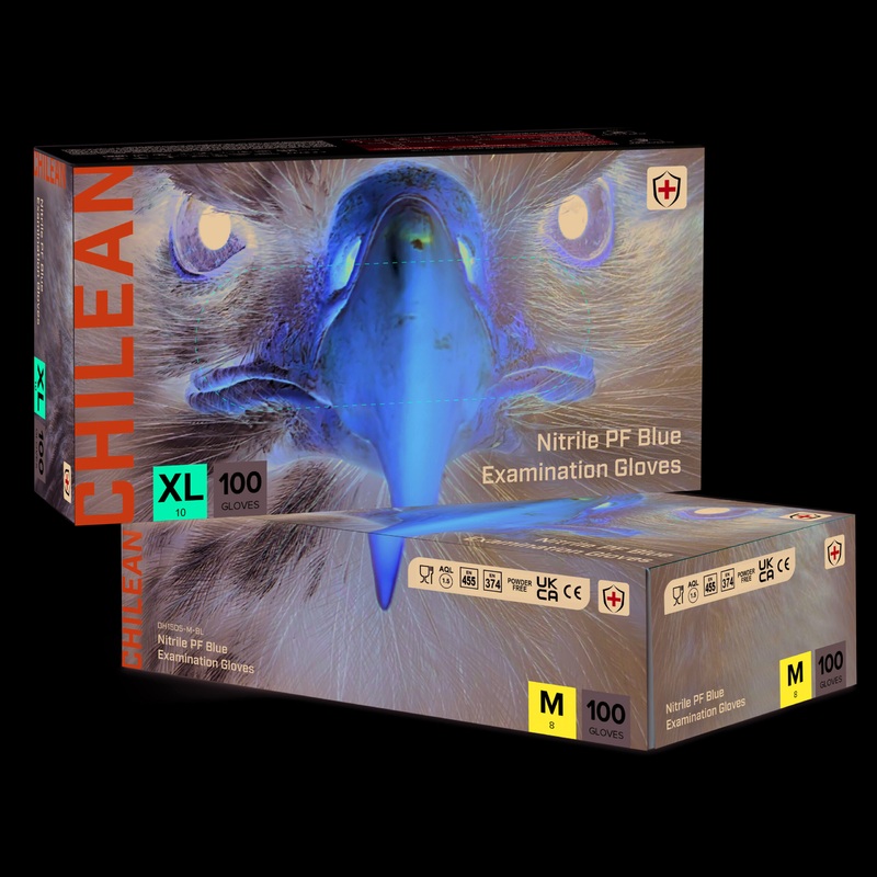 Chilean Medium Duty Blue Nitrile Gloves 1 Case (10 Boxes of 100 Gloves) AVM Workwear and Embroidery Ltd