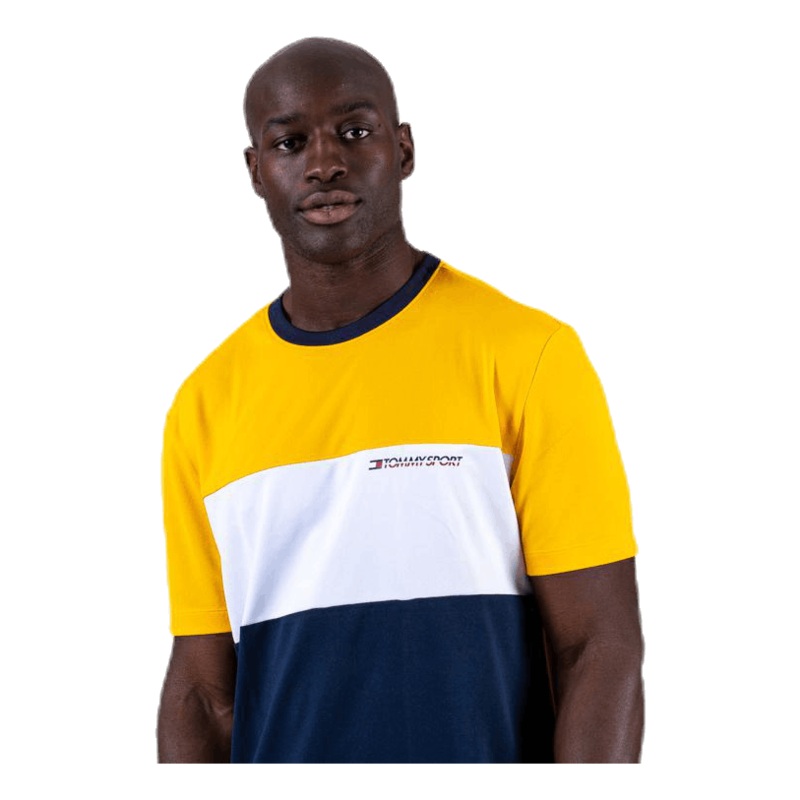Tommy Hilfiger Sport Colourblock Logo Tee andas, r ltt och har en slimmad passform fr en mer avslappnad stil. Denna t-shirt r perfekt fr dig som r p sprng som behver se bra ut och m bra. Brstlogotypen reflekterar TOMMY HILFIGERs ikoniska logotypdesign fr a