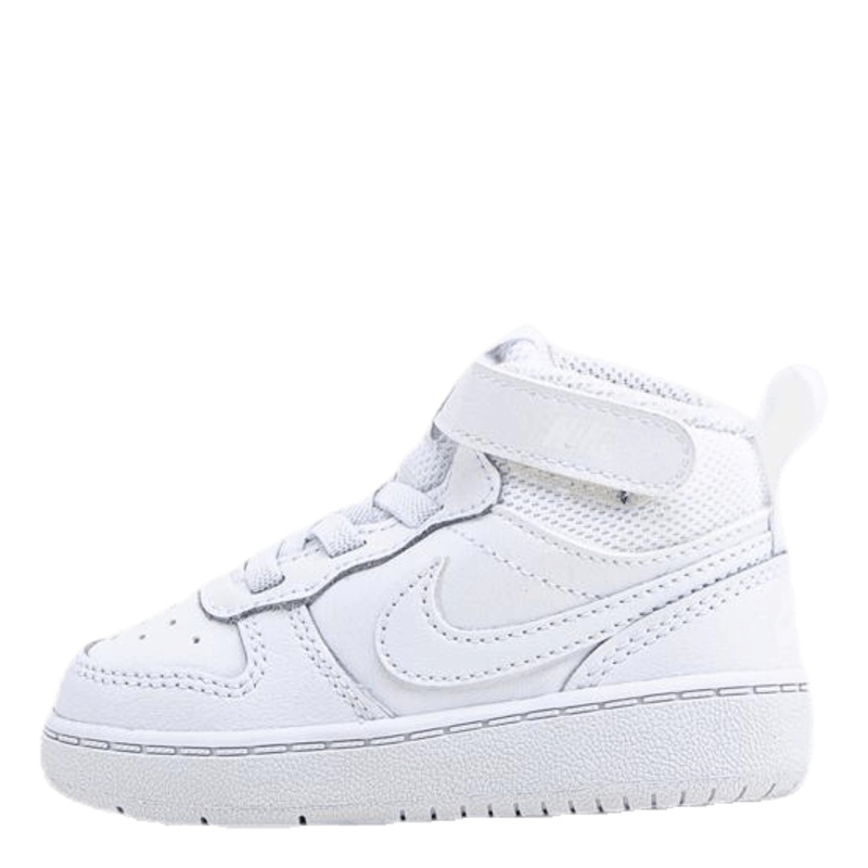 Se ut som ett riktigt basketproffs utanfr planen med Nike Court Borough Mid 2. Den klassiska hga designen inkluderar hllbart lder fr ett exklusivt utseende och knsla. Tv remmar skapar en sker passform och gr skorna enkla att ta p och av