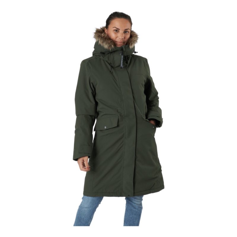 Erika r en klassisk, varm Didriksonsparka i en feminin modell. Helt vind- och vattentt med tejpade smmar fr en 100% vattentt konstruktion. Tillverkad i en mjuk polyester med en matt yta. Erika har en justerbar huva med en avtagbar syntetisk pls samt en hg krage. Tvvgsdragkedja med skyddande vindsl samt tv fickor framtill med knappstngning och tv fickor med vattentt dragkedja. Tv innerfickor, varav en med dragkedja. Parkan kan justeras i nederkant, midja, rmslut och huva vid behov. Ribbade innermuddar med tumhl. Reflexdetaljer i den syntetiska plsen, i Didriksons-loggor och i dragkedjornas loopar. Ett reflxeband i framfickan kan fllas ut vid behov. Fodret r infrgat med solution dye-teknik. Denna teknik sparar vatten, energi och kemikalier vid framtagning. Vattenavvisningen r PFC-fri.
