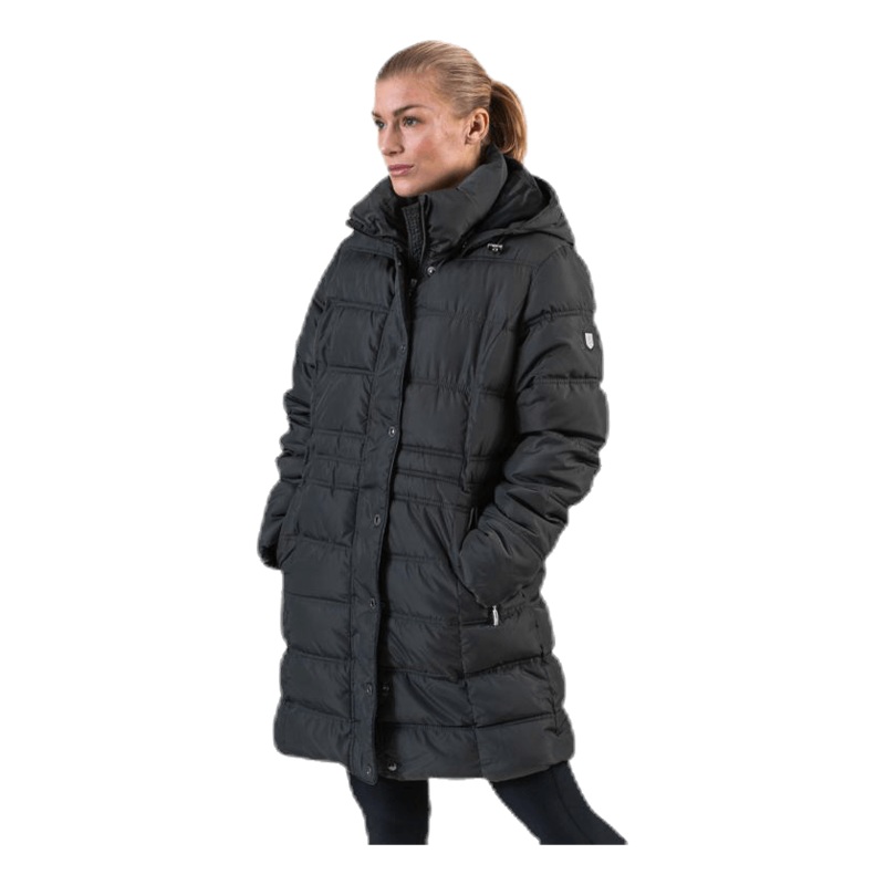 Varm lngre dam parka med dunknsla. Avtagbar huva. Ltt insvngd midja fr kvinnlig passform. Dragkedja med knappsl med tryckknappar. Tv framfickor med metalldragkedja. rmmuddar i stretchig lycra.