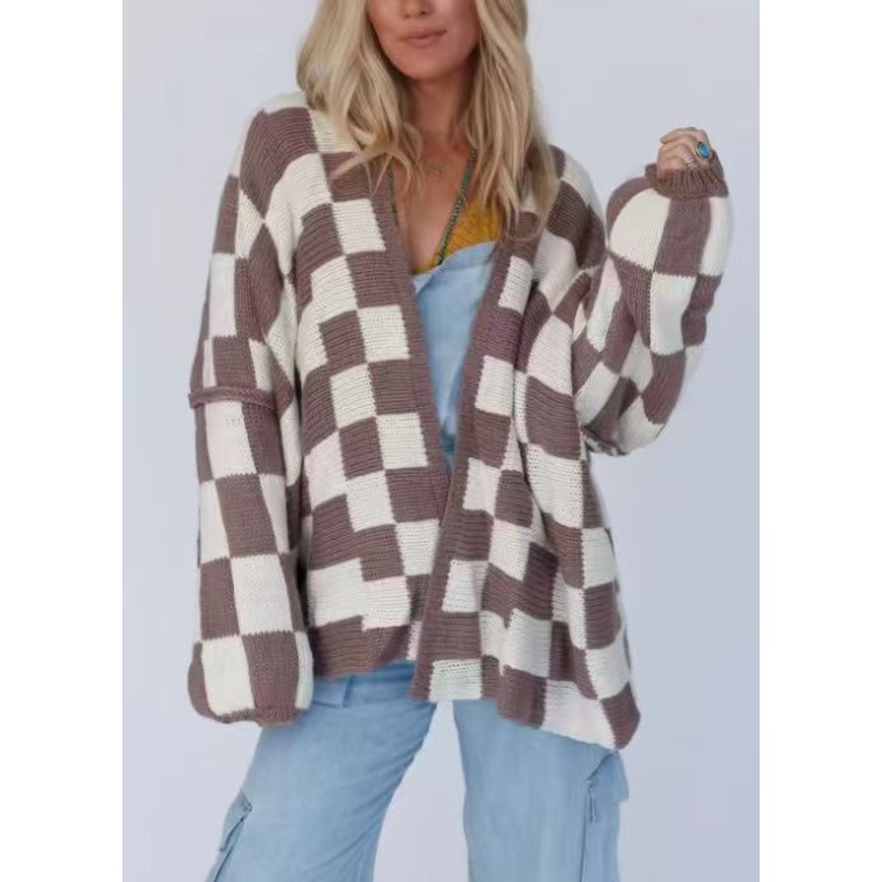 Fashion Plaid Stitch Womens Coat Sweater – Sweater and Women Sweater price