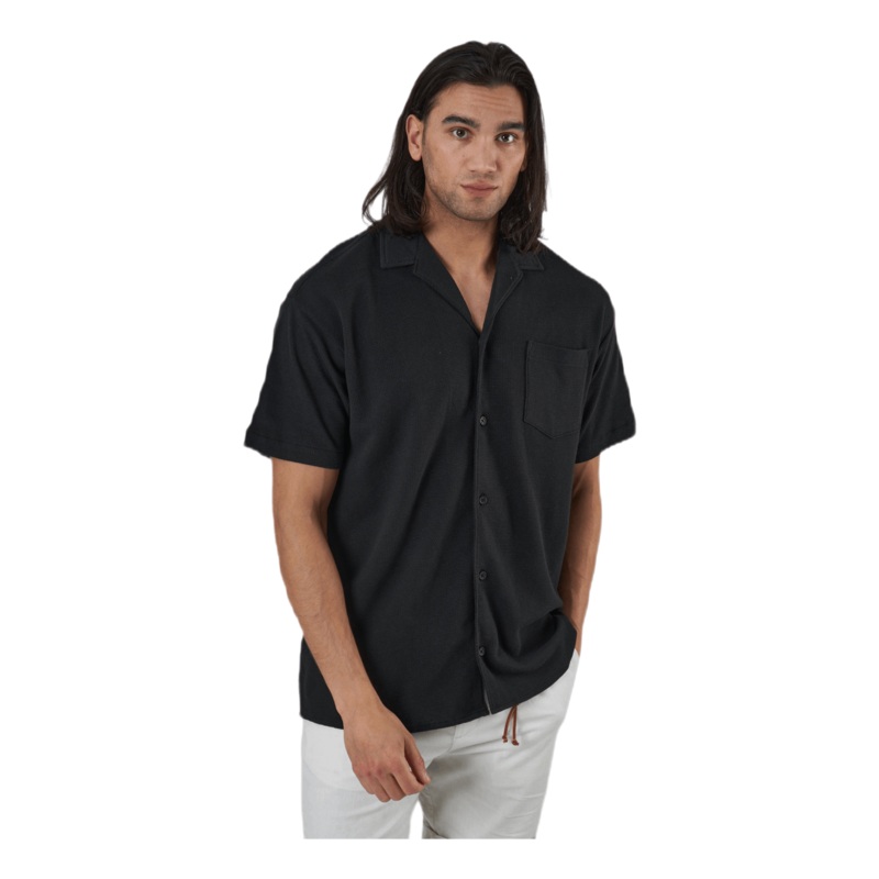 Findus Resort Shirt Ss On r en svart ss skjorta frn Jack & Jones. Den hr mannens avslappnade skjorta har en rund hals och normal passform.