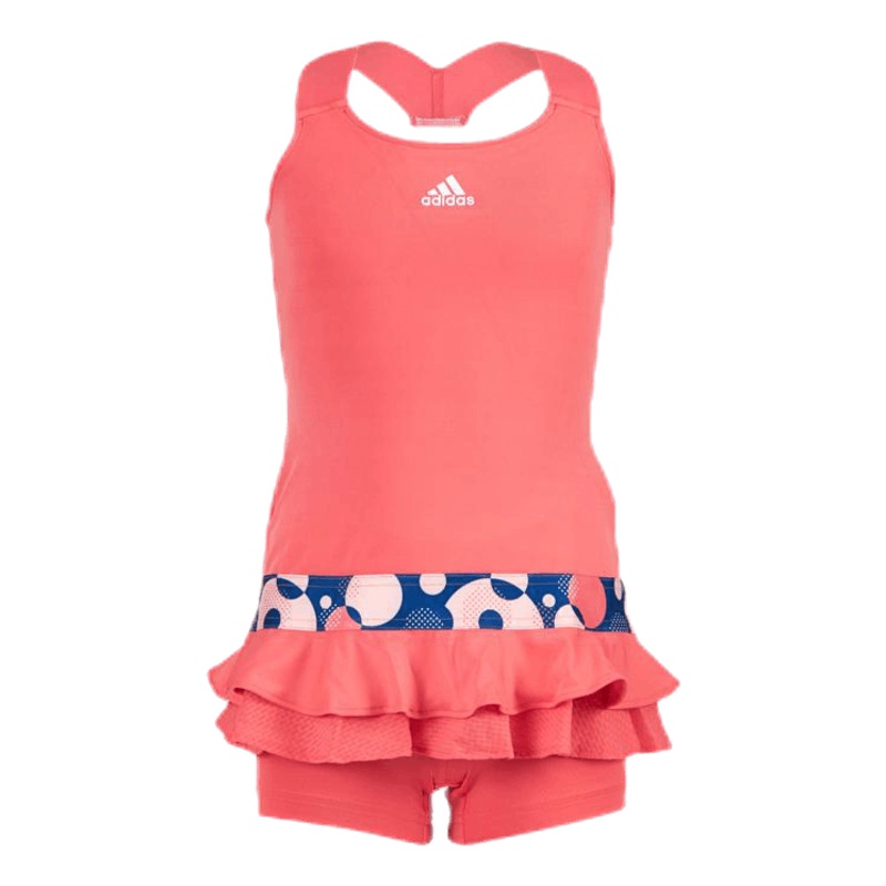 Visa upp dina snygga slag. Denna tennisklnning frn adidas fr ungdomar absorberar fukt fr en torr knsla frn frsta serve till matchboll. Det superstretchiga materialet och de matchande tightsen lter dig strcka dig efter skott med en skn knsla. Grafiska detaljer och volang i fllen ger en snygg look.