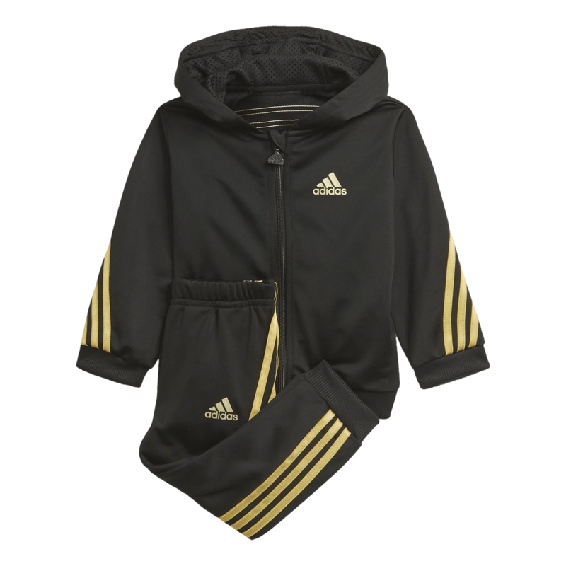 Ett joggingstll med stolt adidasstil frn topp till t.Grunda vardagsleken i sport med det hr tvdelade joggingstllet fr smbarn. Hoodien och byxorna r gjorda i smidig, glansig trik och pryds av ett heltckande adidas Badge of Sport-tryck. Ikoniska 3-Stripes lngs armarna och benen fullndar looken.Den hr produkten r gjord med Primegreen, en serie med mycket funktionella, tervunna material.