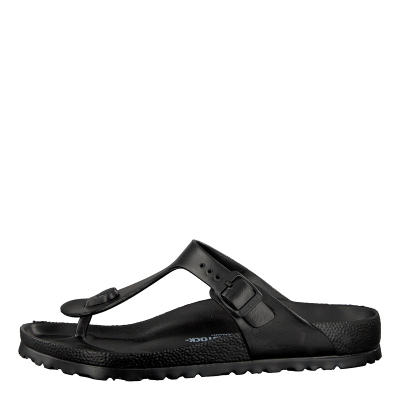 Birkenstocks gjorda av syntetiska material r det rtta valet fr den som vill bra de ikoniska sandalerna ret runt. Gizeh EVA r en klassisk svart modell med en lg, bekvm klack. Fotbdden r tckt av mjukt syntetiskt material och erbjuder mer stoppning n naturmat
