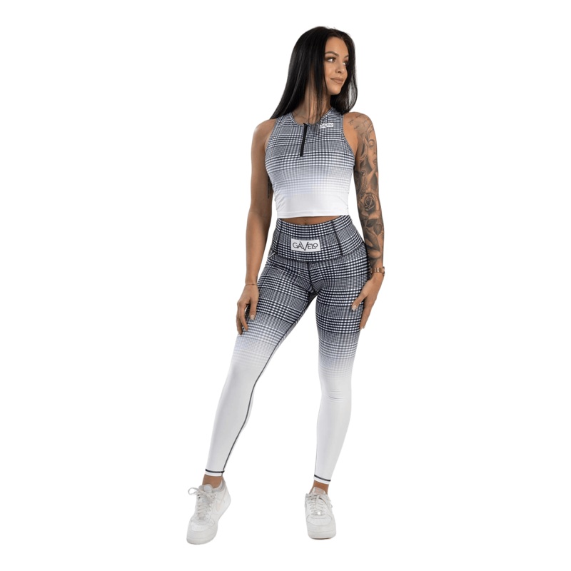 GLNCHCK 5 White tights har ett svart/vitrutigt mnster som bleknar till vitt vid vaderna. Med hg midja och kompressionstyg r de perfekta fr hgintensiv trning eller vardagligt slitage, som kombinerar mode och funktion.