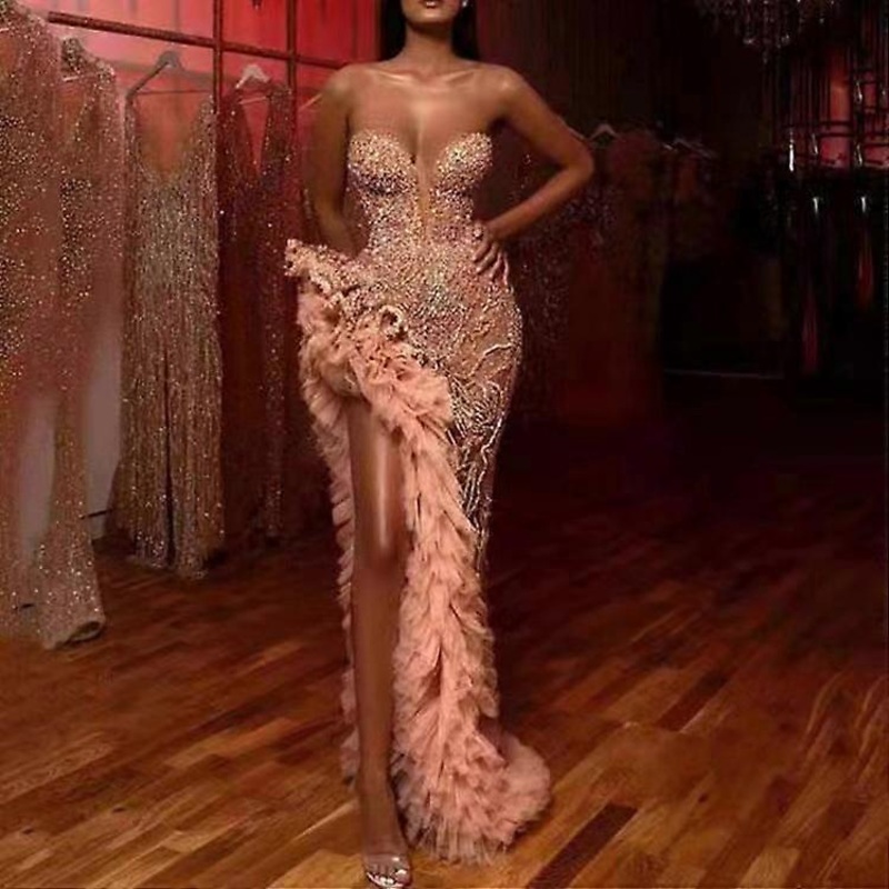 Gold silhouette temperament commuter sequin dress | Fruugo SG