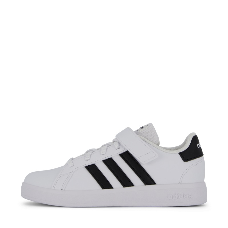 Introducera ditt barn till sneakers tidigt med dessa snygga adidas Grand Court skor fr barn. Designade med en slitstark gummisula, ger dessa skor den perfekta balansen mellan std och flexibilitet fr varje steg och hopp. De elastiska snren strcker sig utan anstrngning nr de dras p, medan den bekvma kardborreremmen gr att barnen kan fsta dem sjlvstndigt. Dessa tidlsa sneakers kommer definitivt att bli en favorit omedelbart och kommer inte att lmnas orrda i ldan lnge.Tillverkad med en kombination av tervunnet material, ovandelen av dessa skor har minst 50 % tervunnet innehll, vilket gr dem till ett miljvnligt val fr medvetna frldrar.