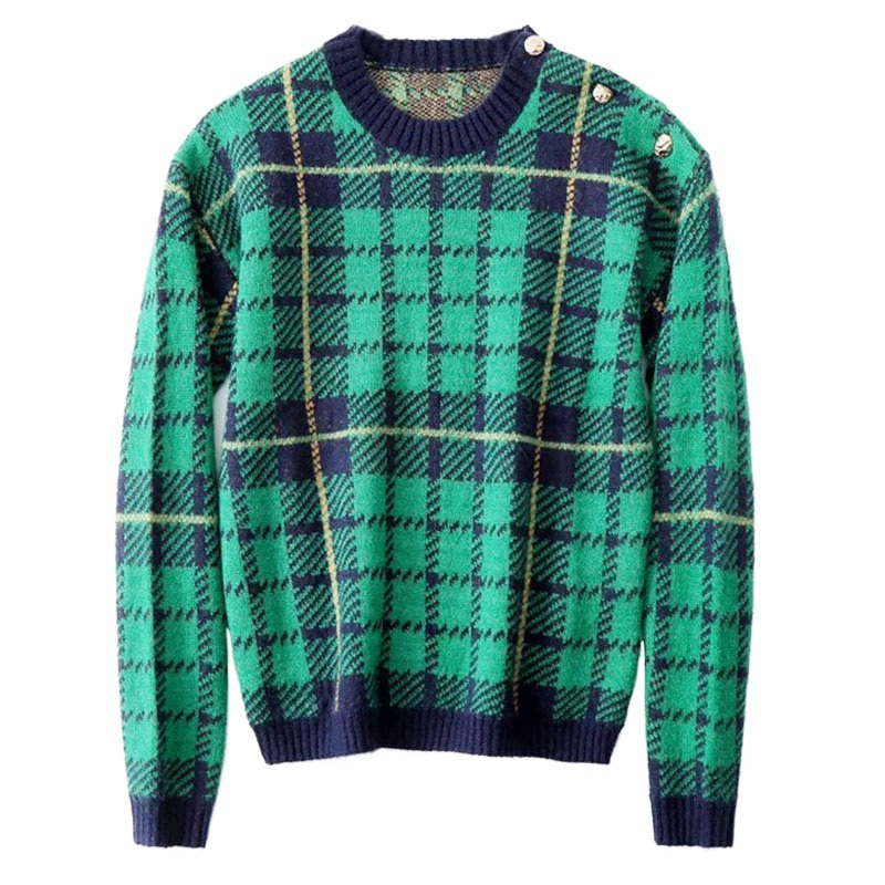 Green Square with Metal Button on Shoulder Winter Ladies Knitted Pullover Women Knitting Long Sleeve Round Neck Sweater – Sweater and Ladies Sweater price