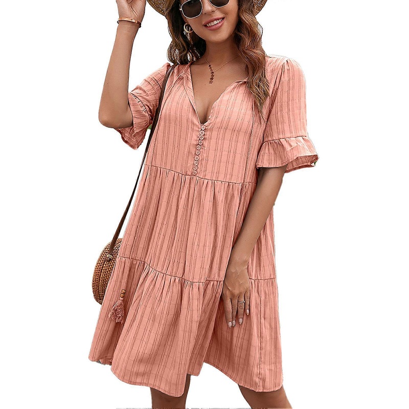 Be the first to review “Half Sleeve Dress V Neck Tie Front Polyester Fiber Casual Loose Mid Waist Dress for Holiday Beach Pink L | Fruugo SG”