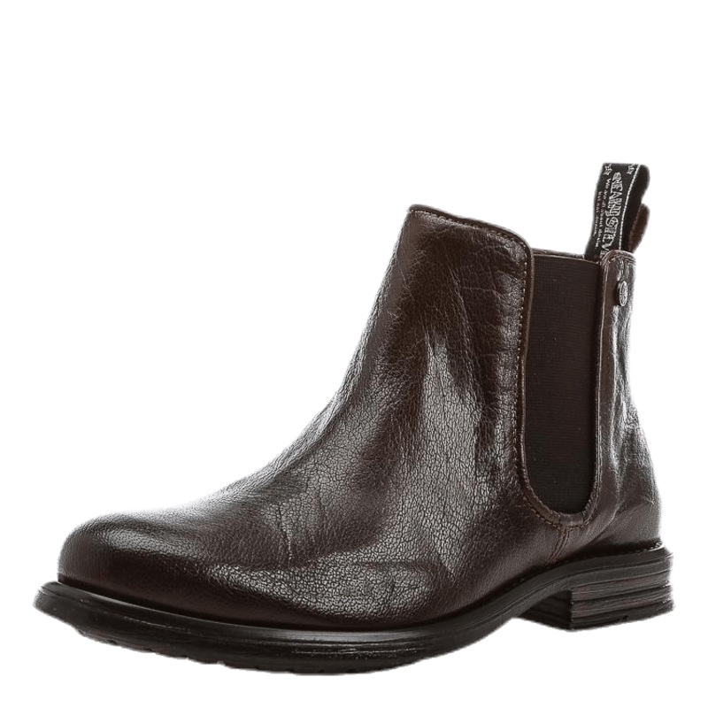 Halligan r en ankelhg Chelsea boot med clean design. Den har elastiska band i skaftet. Den r gjord i tjockt och slitstarkt buffalo lder som ger den mycket karaktr och attityd. Innersulan r gjord i lder och den klassiska Sneaky Steve gummisulan r randsydd.