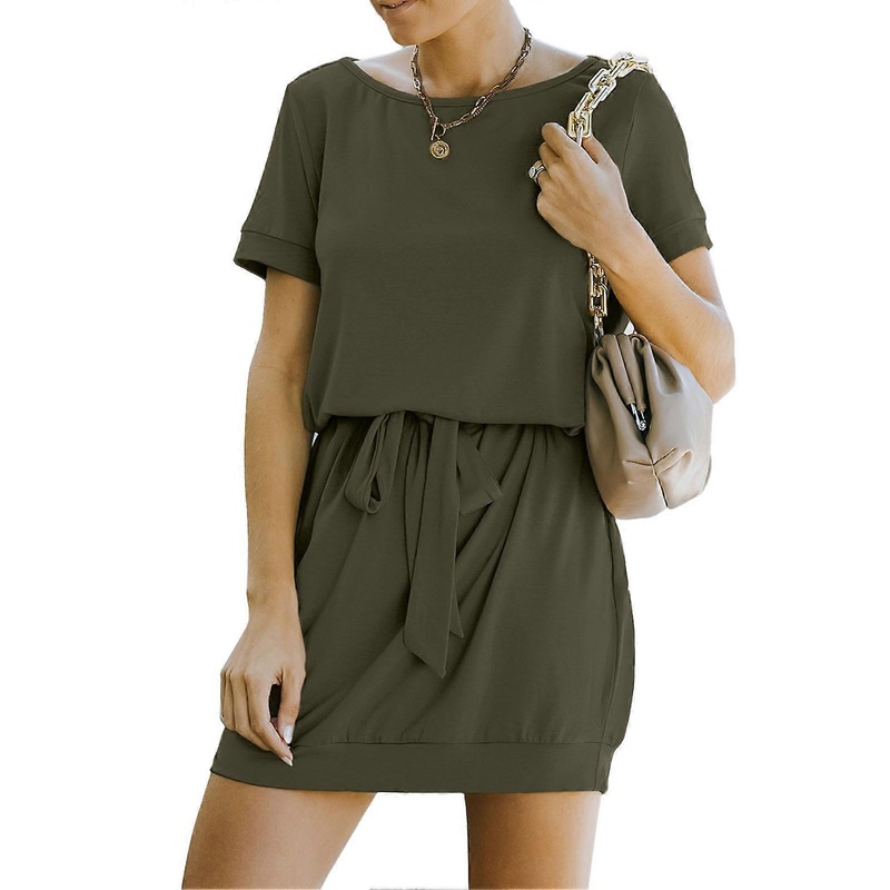High Waist Belted Short Dress Summer Round Neck Casual Short Dress for Girls Women OD Green M | Fruugo SG
