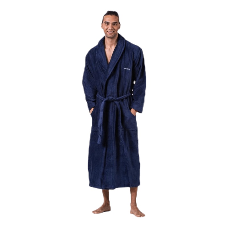 Morgonrock i velour. Sjalkrage , fickor och slits.
