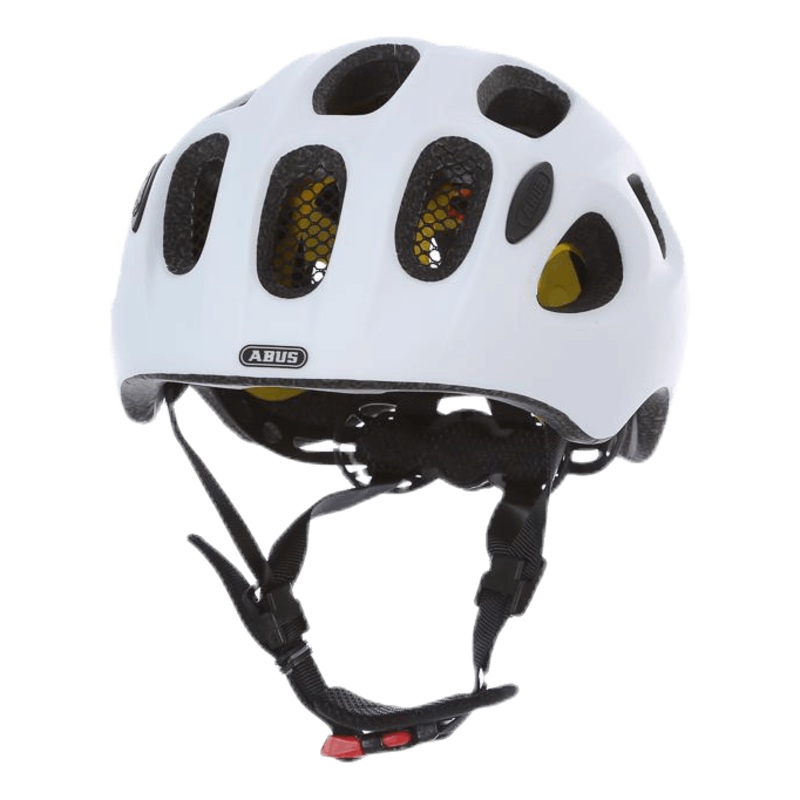 Abus Youn-I In-Mold och det sttdmpande hjlmmaterialet EPS ZoomLite - exakt justering Integrerat LED-ljus i hjlmen fr extra synlighet/skerhet i mrker Mycket bra ventilation med 5 luftintag och 12 utlopp Avtagbar och tvttbar stoppning med maximal komfort Vik