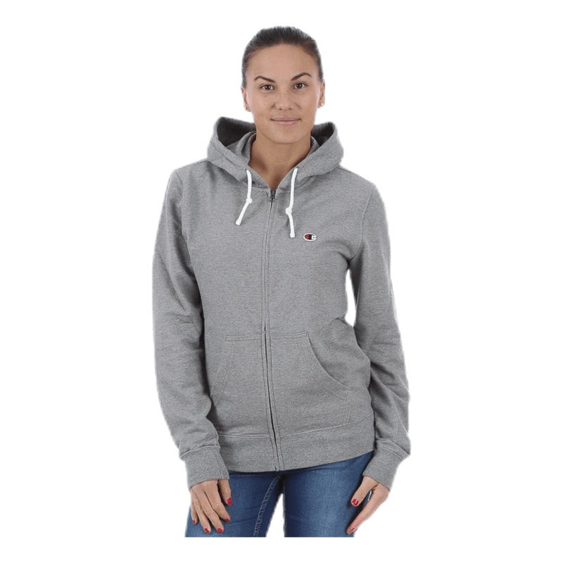 Full zip trja med liten Champion-logo p vnster brst. Ordentlig huva med snrning och delad knguruficka fram. Mudd i midja och rmslut. Tillverkas i Spring Terry material.