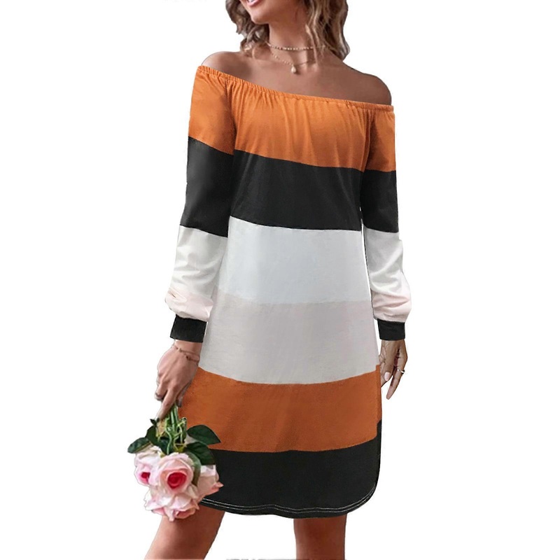 Horizontal Striped Long Sleeves Dress Tube Top Breathable Casual Soft Skin Friendly Woman Dress for Party Work Orange S_-sy_-sy | Fruugo SG
