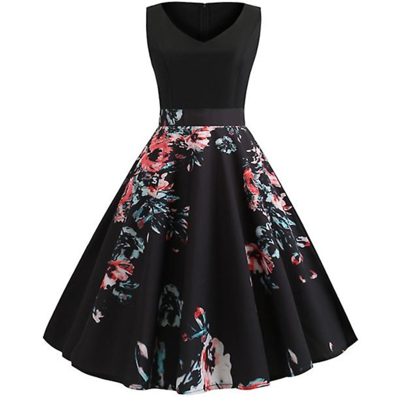Hot Sale New Outlet Summer Autumn Women’s Fashion New V-neck Print Sleeveless Elegant Swing Dress | Fruugo SG
