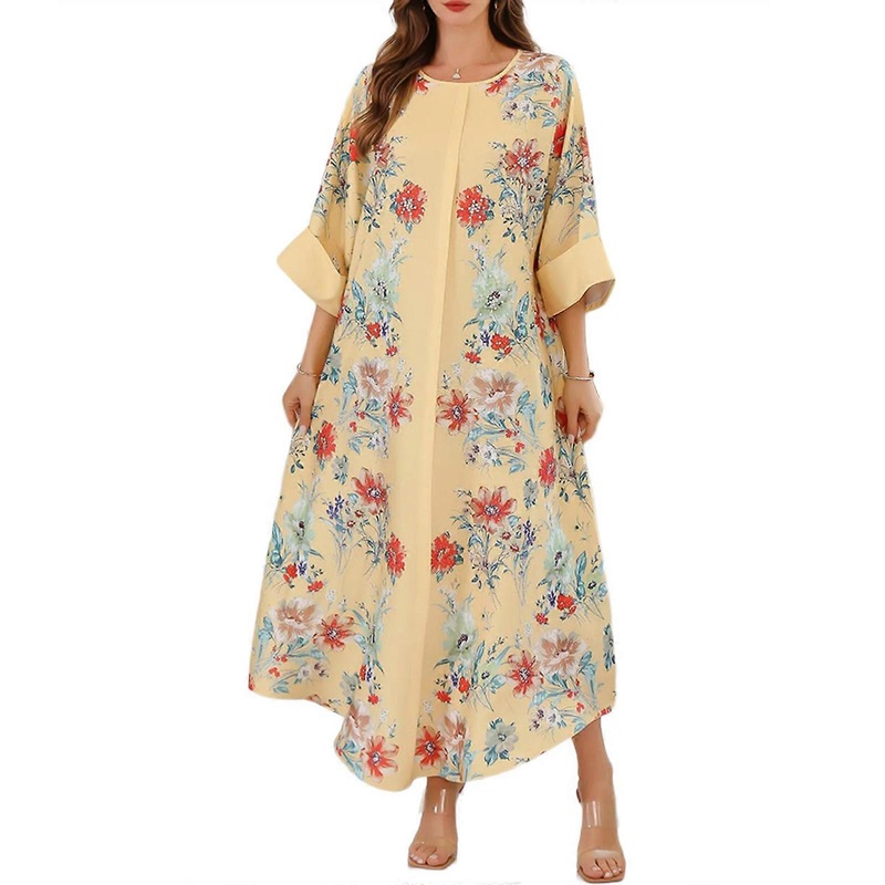 Casual loose full length kaftan dress, make it comfortable to move around, vintage flower print, round neck, add touch of elegant and fashion to your Islamic clothing.