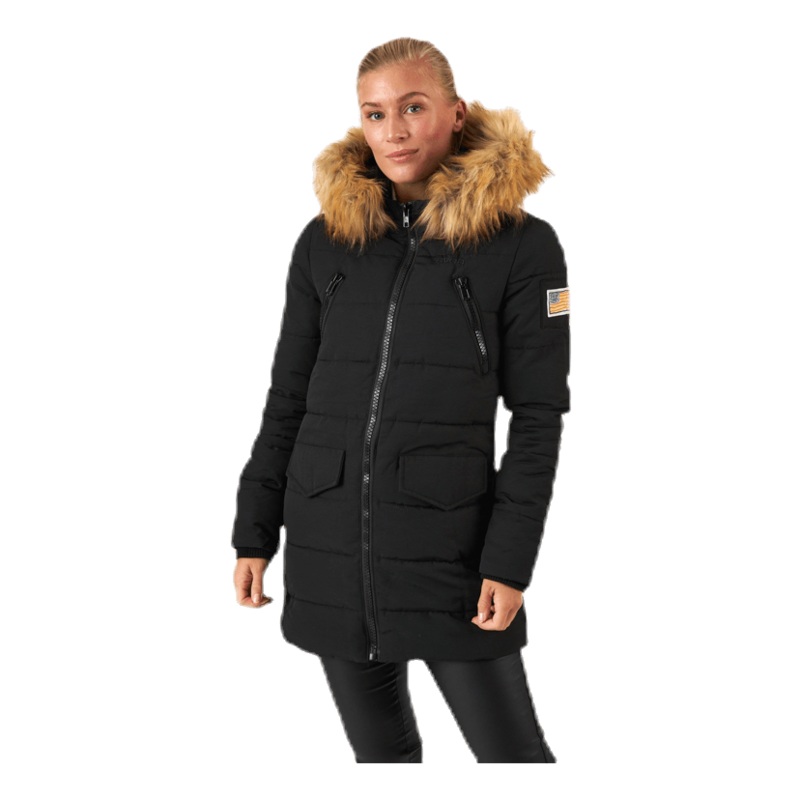 En mellanlng jacka i figurnra passform. Jackan har dragsko i midjan fr att kunna f en mer markerad midja. 2 stycken brstfickor med dragkedjeknppning samt tv fickor med ficklock. Jackan har en huva med en fin avtagbar fuskpls i ytterkant. Broderad Svea logg