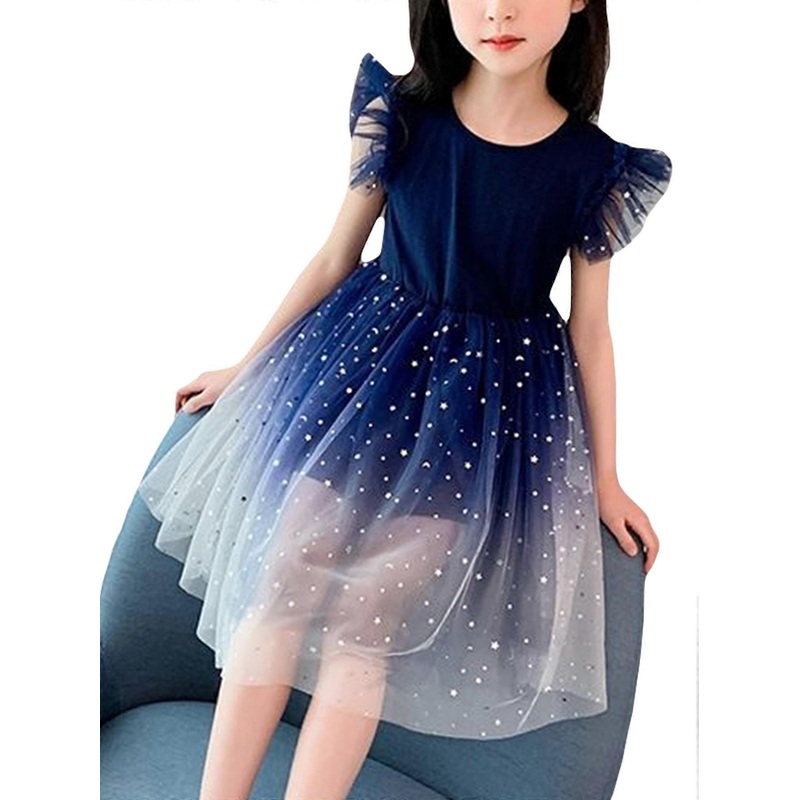Description Please refer to size guide carefully before purchasing at pictures description. Package Included:1 x Kid's Dress Features: Material: Cotton Blend Style: Princess Dress Pattern: Galaxy Color: Deep Blue Description: 1. Wear this dress to a weddin