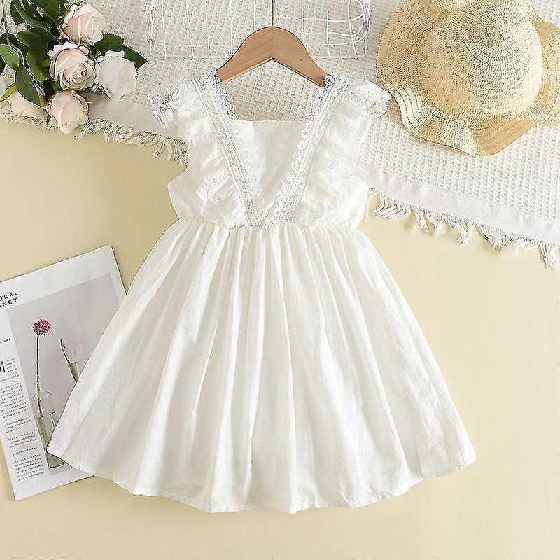 Description Kids Girls Dresses 2023 New Summer Lace Princess Dresses Children Solid color Clothing Baby Wedding Party Vestidos