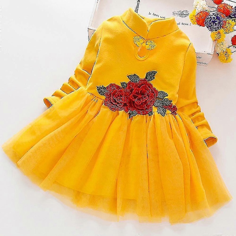 Kids Girl Princess Swing Dress Party Long Sleeve Floral Skater Tutu Dresses for Age 2-9 Years
