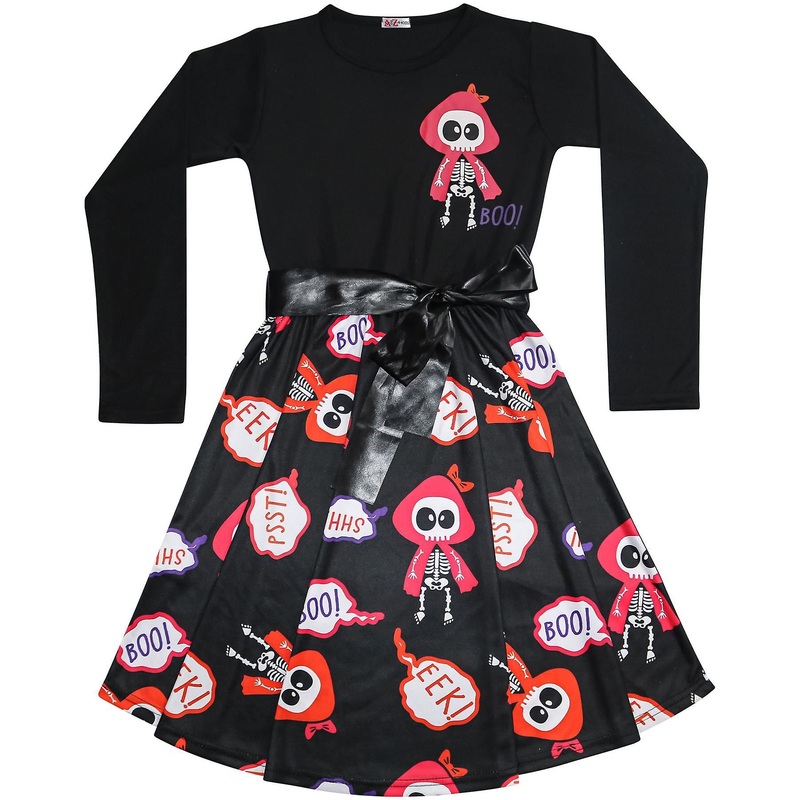 Kids Girls Skater Dress Skeleton Print Panelled Halloween Party Dresses 5-13 Yrs | Fruugo SG