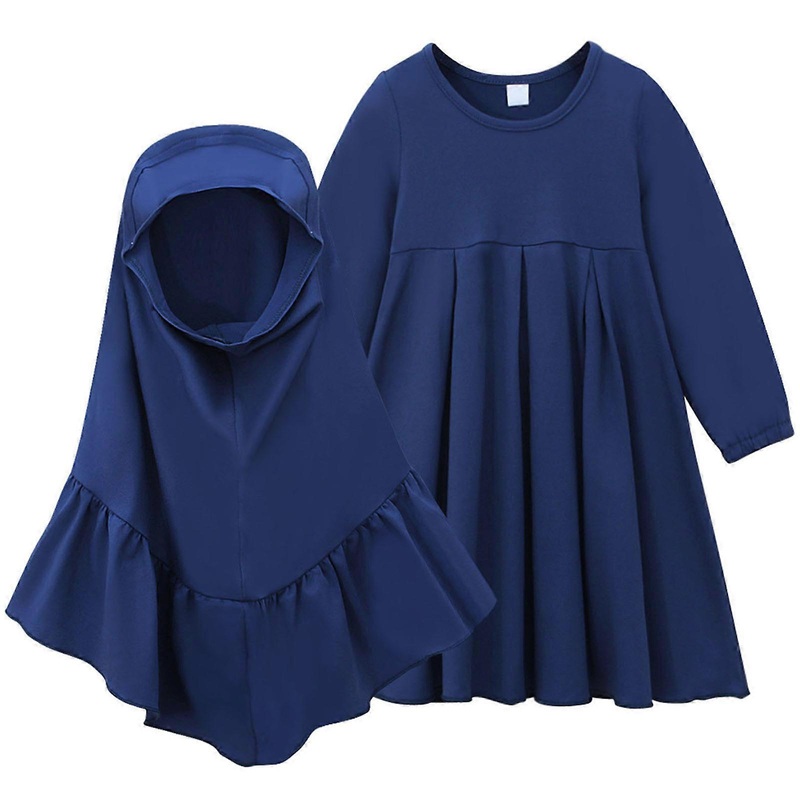 Kids Prayer Dress Muslims Dress Girls Long Sleeve Dress with Hijab Solid Color Islamic Dress Children Prayer Clothing Blue 90 yards | Fruugo SG