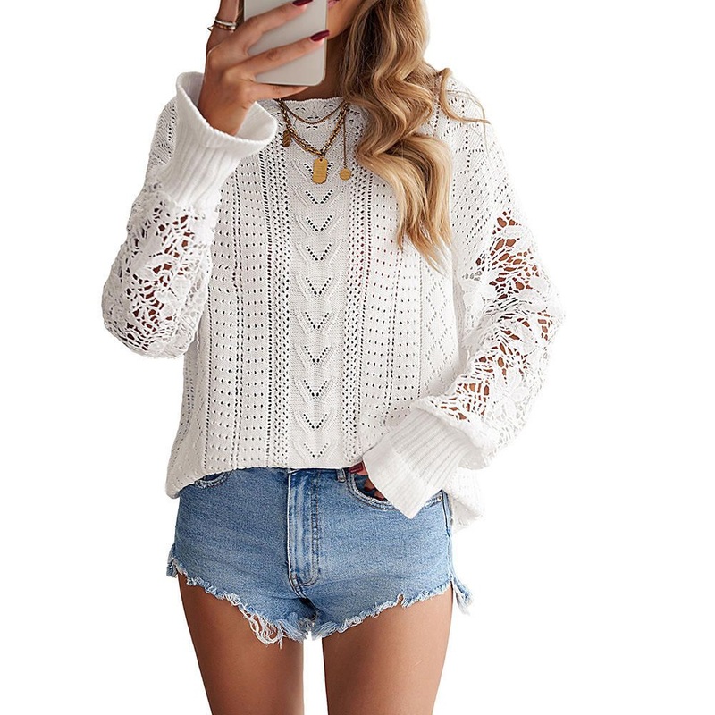 Lace Stitching Long-Sleeved Sexy Knit Pullover Sweater for Women – Sweater Women and Knitted Sweater price