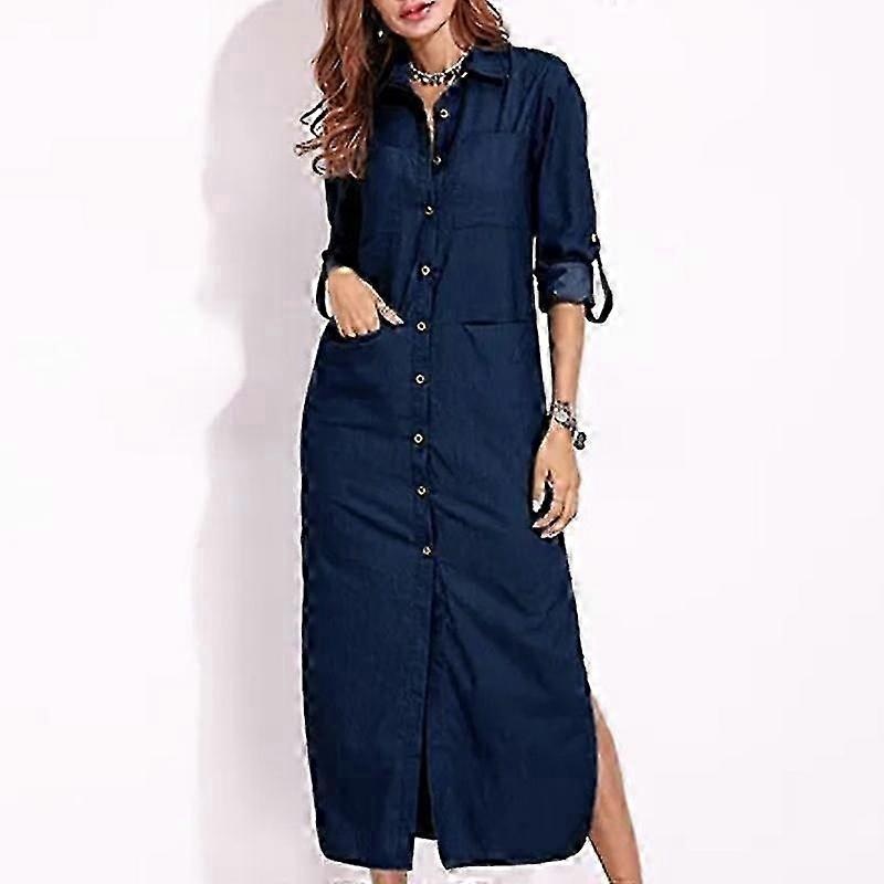 Ladies Jean Dresses Long Sleeve Denim Shirt Dress Women Travel Single Breasted – JA | Fruugo SG