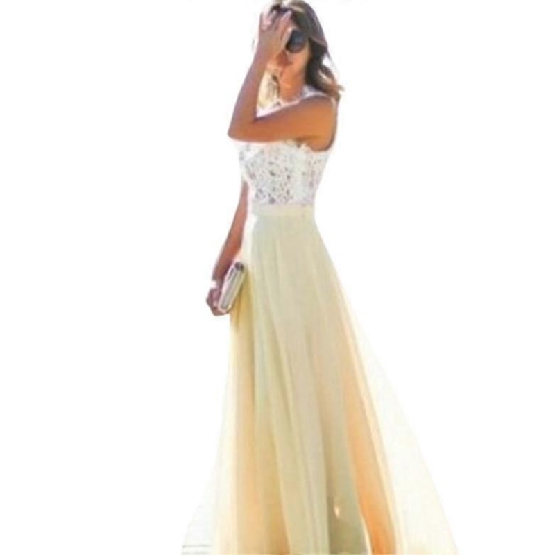 Description The dress looks very nice. It is made of high quality material. The trendiest style, very feminine and stylish this season. comfortable to wear. The dress has a beautiful white lace top and pink chiffon bottom. Any great occasion, perfect for a