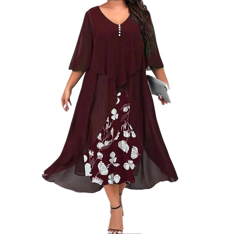 Long Dress Half Sleeves Chiffon Splicing V Neck Loose Waist Swing Large Hem Elegant Floral Print Women Maxi Dress for Autumn-Good | Fruugo SG