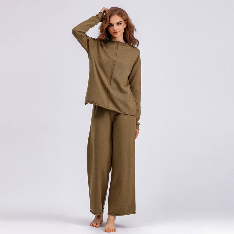 Loose Knitted Set Wide Long Pants and Casual Basic Color Pullover Sweater – Daily Clothes and Comfortable and Soft Garments price