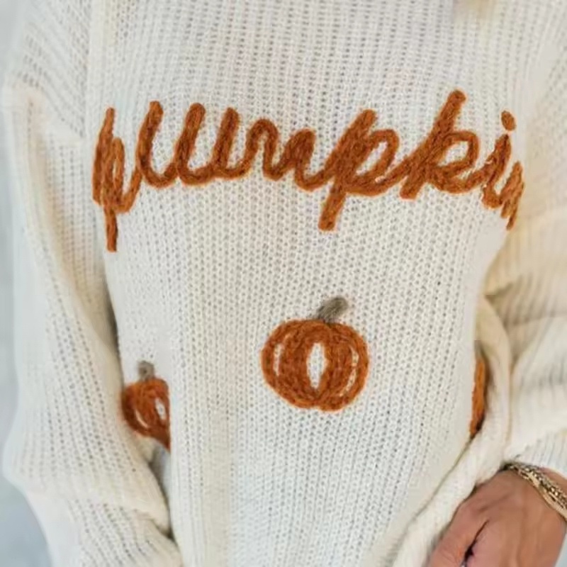Luxury Round Neck Pumpkin Queen of Sparkles Halloween Womens Knitted Sweaters – Sweater and Halloween Sweater price