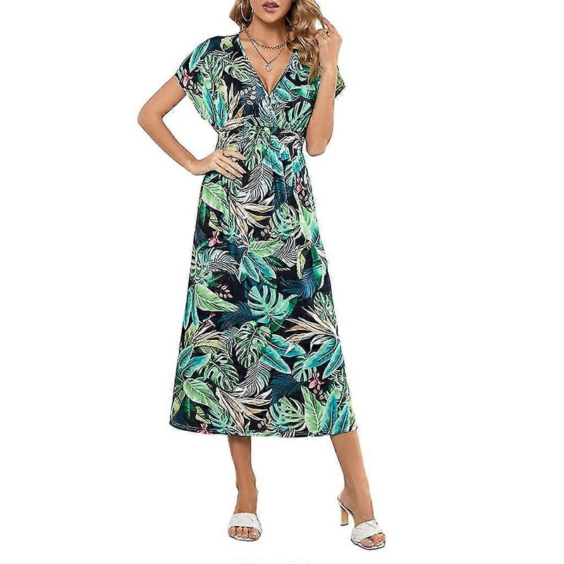 Bohemian style, tropical leaves / leopard / striped printed, shirred elastic waist, side split hem.