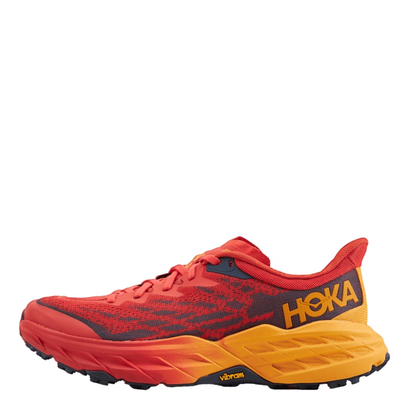 En arbetshst designad fr tekniska stigar, Speedgoat 5 erbjuder mindre vikt och mer grepp n ngonsininnan. En ny sko frn yttersula till skosnren, denna trailbeast r uppdaterad med VibramMegagrip med Traction Lugfr frbttrat grepp p ls jord. Speedgoat 5 behller samma stapelhjd och vippprofil och anvnder enlttare mellansulsblandning och hjrtligare, dubbellagers jacquardnt fr att inspirera till frtroende i alla terrnger.Varfr du kommer att lska det: Det r allt du lskar med Speedgoat, uppt.