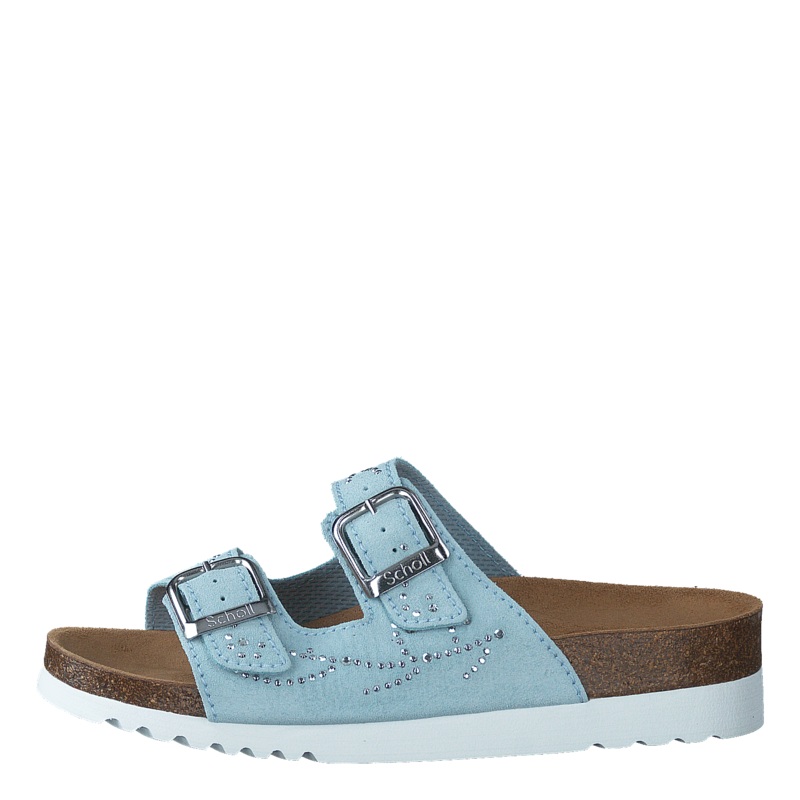 Nyhet! Scholls bsta fotbdd Adapta med ltt upphjd sula som stdjer och avlastar. Klassisk design med tv justerbara remmar, vackra strass och nitar som dekoration.