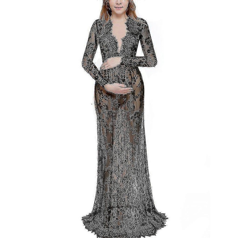 Description Maxi Maternity Gown Lace Maternity Dress Fancy Photo Shooting Dress. Specification: Material: Acrylic Material: Lace Style: Cute Color Style: Natural Color Dresses Length: Ankle-Length Silhouette: A-LINE Collar: V-Neck Sleeve Length(cm): Full F