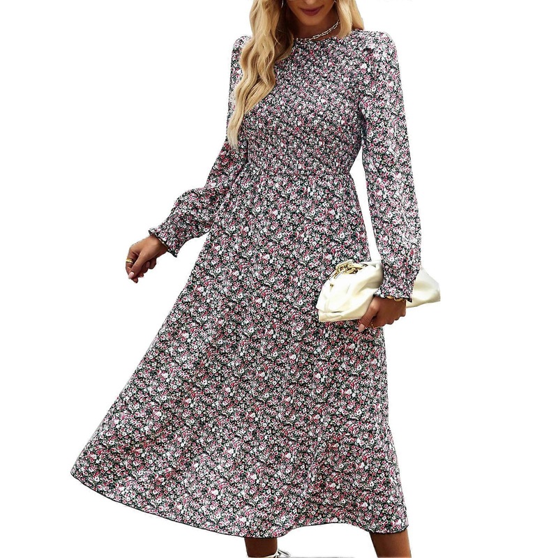 Description Item Type: MidiLengthDressMaterial: 100% polyesterWashing instructions: Machine wash (do not bleach)Characteristic: Crewneck, long sleeves, printed midi length dressApplicable places: Party, club, leisure, daily life, shopping, office, school,