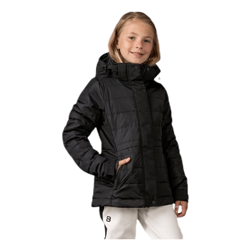 Vadderad skidjacka fr junior, i ngot smalare passform med stilren design. Ltt och vrmande syntetisk fyllning med ""down touch"". Vattenavvisande yttertyg och kontrastpaneler p huva, front och rmar. Avtagbar, justerbar huva och mjukt borstad trik i kragen f