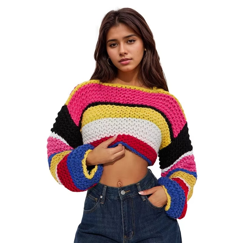 Be the first to review “Multi Color Women Colorful Stripe Knitted Sweater – Sweater and Womens Sweaters price”