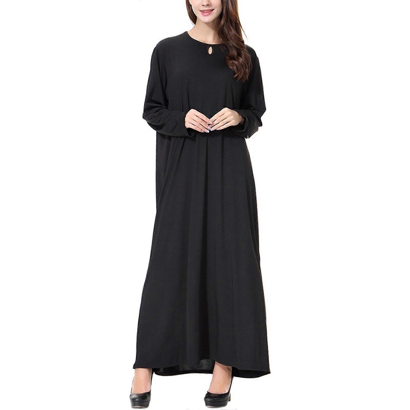 Description Features: Solid color crew neck long sleeve designs , you will be more elegant fashion when you wear it . Quality material,soft, stretchy, lightweight and breathable ,skin-friendly ,comfortable wear . Long sleeve abaya islamic muslims dress,it