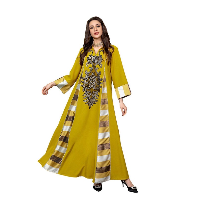 Description Features: Embroidery beading designs , you will be more elegant fashion when you wear it . Quality material,soft, stretchy, lightweight and breathable ,skin-friendly ,comfortable wear . Long sleeve abaya islamic muslims dress,it is suitable for